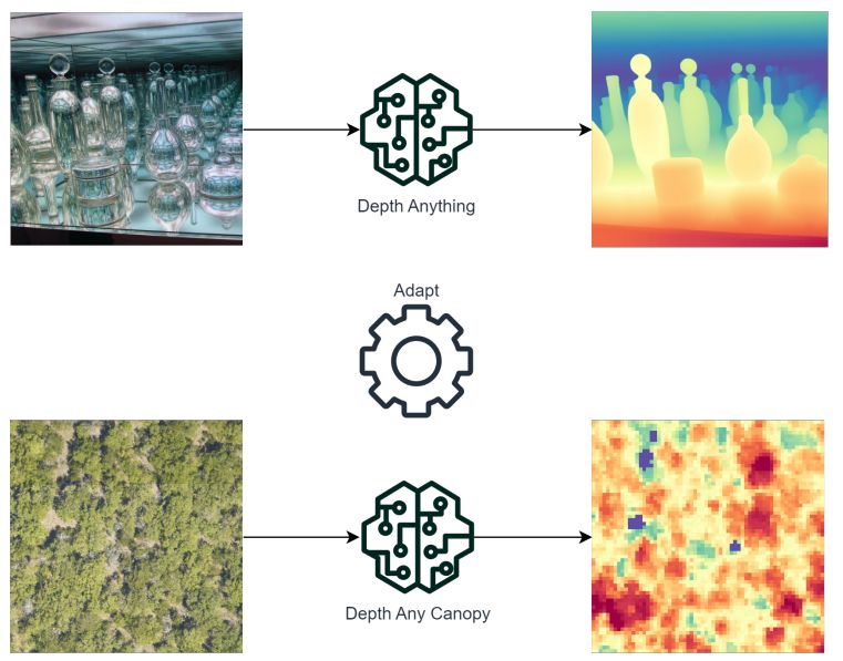 Daniele Rege Cambrin et al. adapted the Depth Anything v2 model that was trained on natural imagery for monocular depth estimation. With a limited training set of aerial images paired with canopy height maps generated by LIDAR, they finetuned Depth Anything to create Depth Any Canopy.